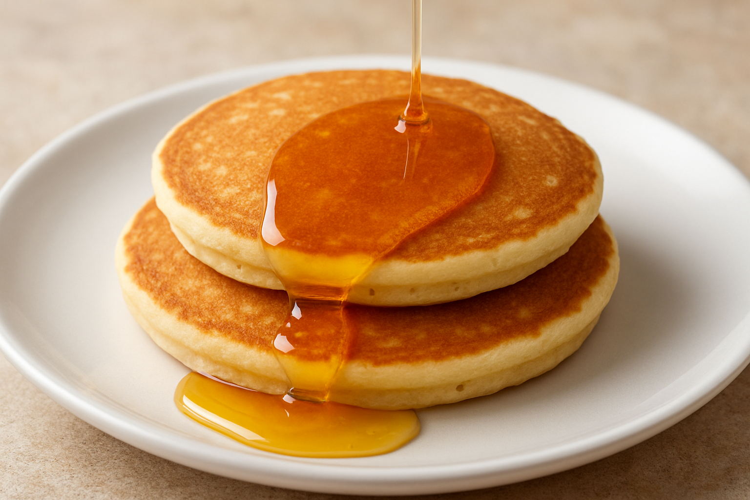 Fluffy, golden pancakes stacked and drizzled with rich honey or maple syrup. Served warm, these classic treats are perfect for a cozy breakfast or a sweet start to your day.